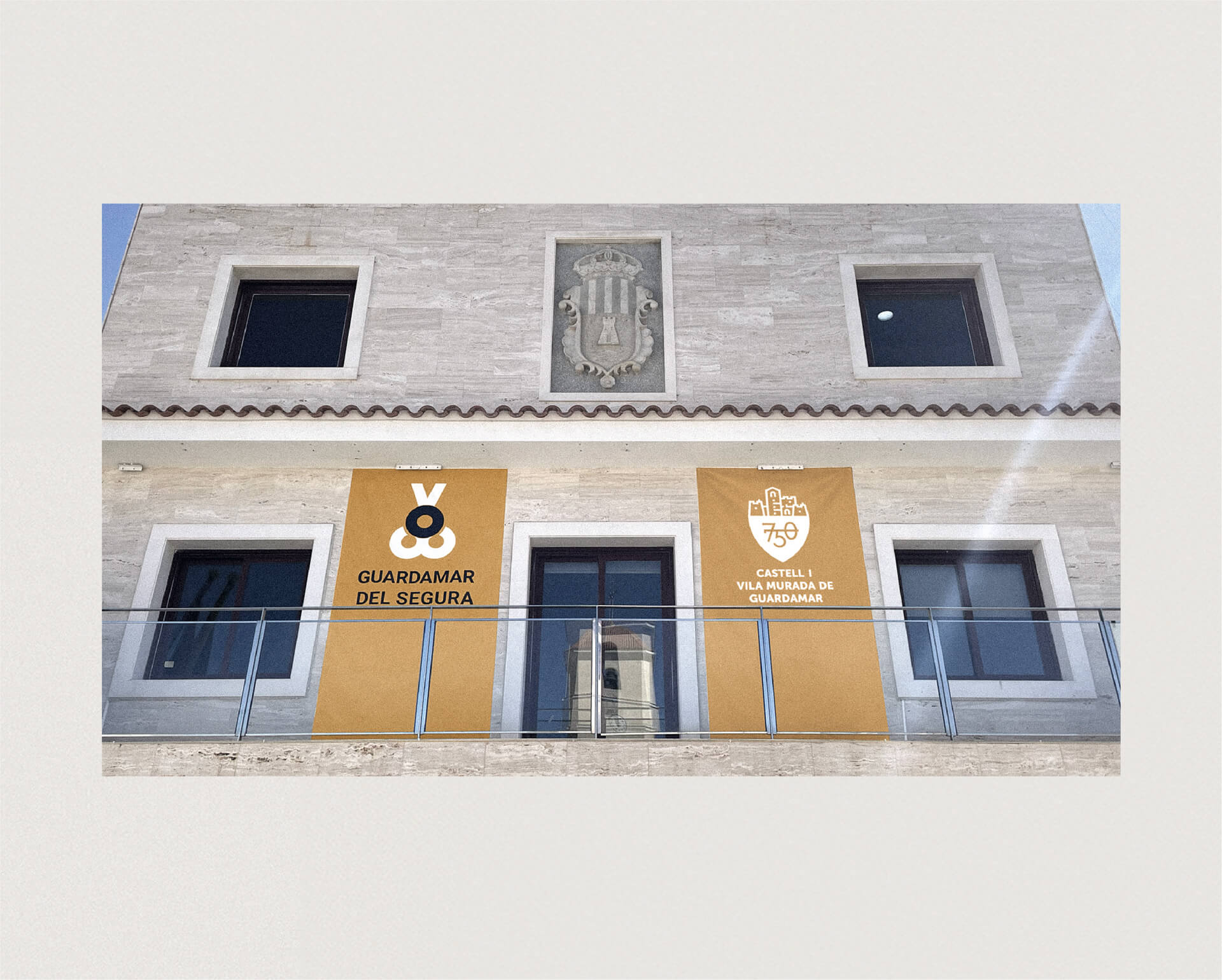 To commemorate the 750th anniversary of the founding of Guardamar del Segura (Spain) as an independent village, we designed an emblem that captures the essence and history of the town.Drawing inspiration from the ancient profile of the walled city and its castle, which were tragically destroyed by an earthquake, we crafted a symbol that embodies resilience and heritage. This emblem has been applied across various media, exhibitions, and publications to celebrate this significant milestone.