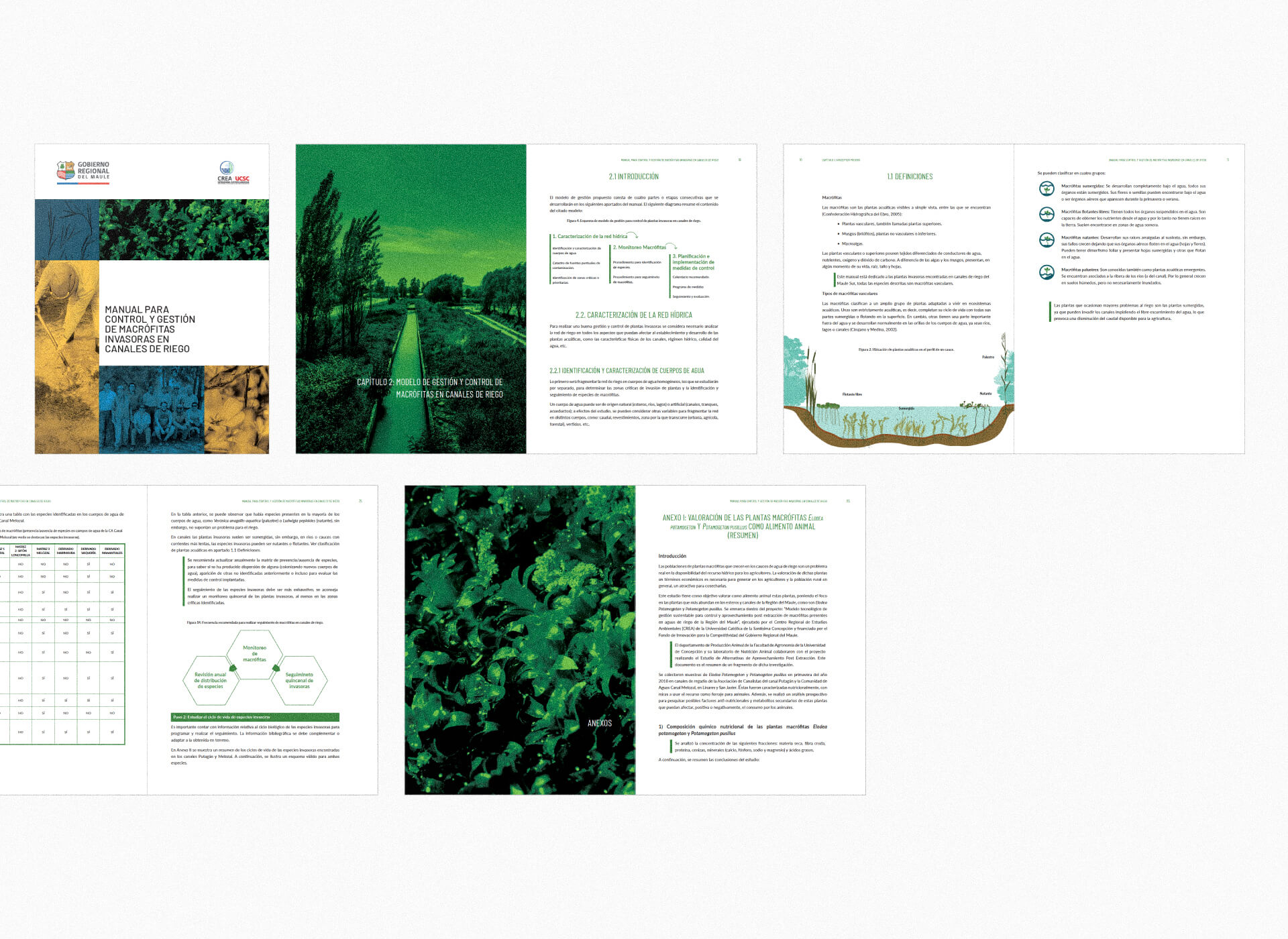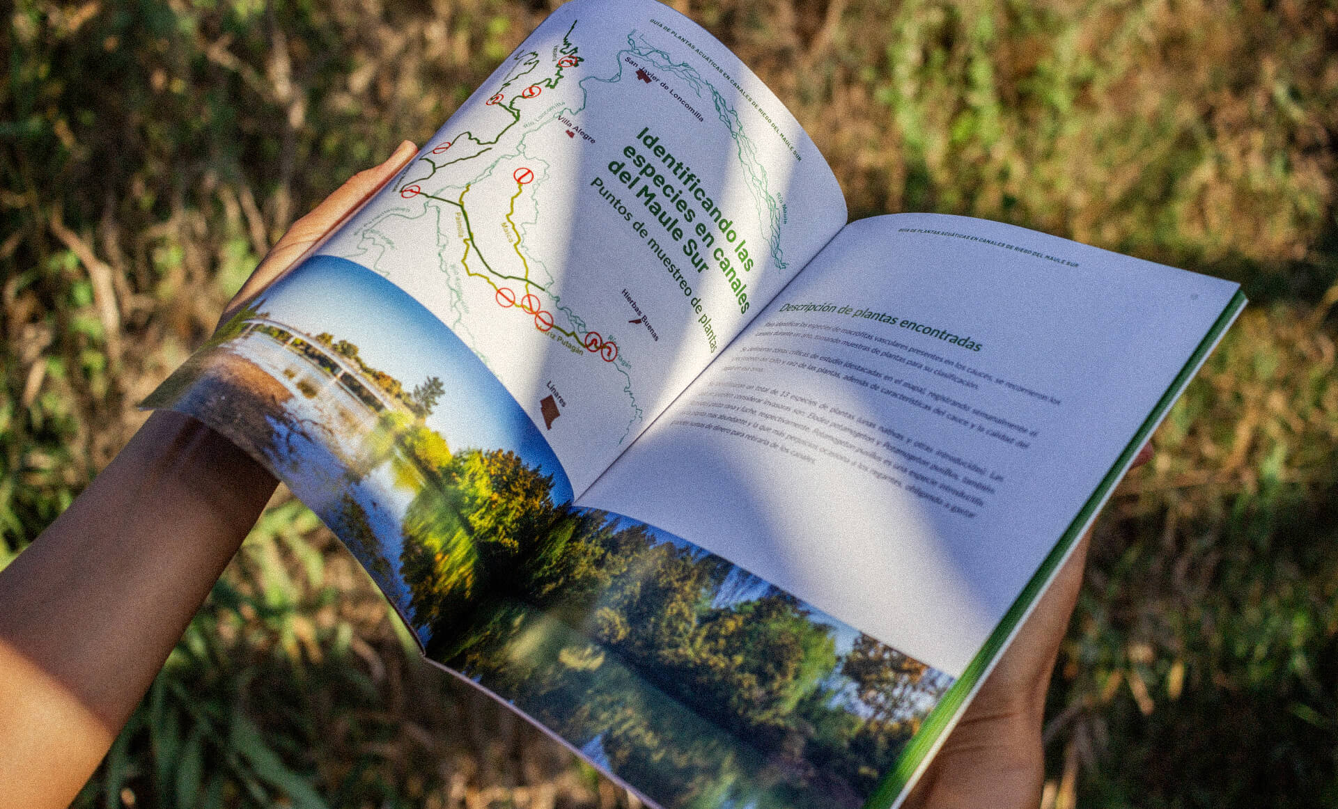 As part of a sustainability initiative in Maule region (Chile), we developed a comprehensive Plant Guide, a Management Manual, and three Technical Folders for Regional Centre for Environmental Studies of the Universidad Católica de la Santísima Concepción (CREA-UCSC). The project aimed to promote the sustainable management and use of plants found in irrigation water, which are a problem for water quality.