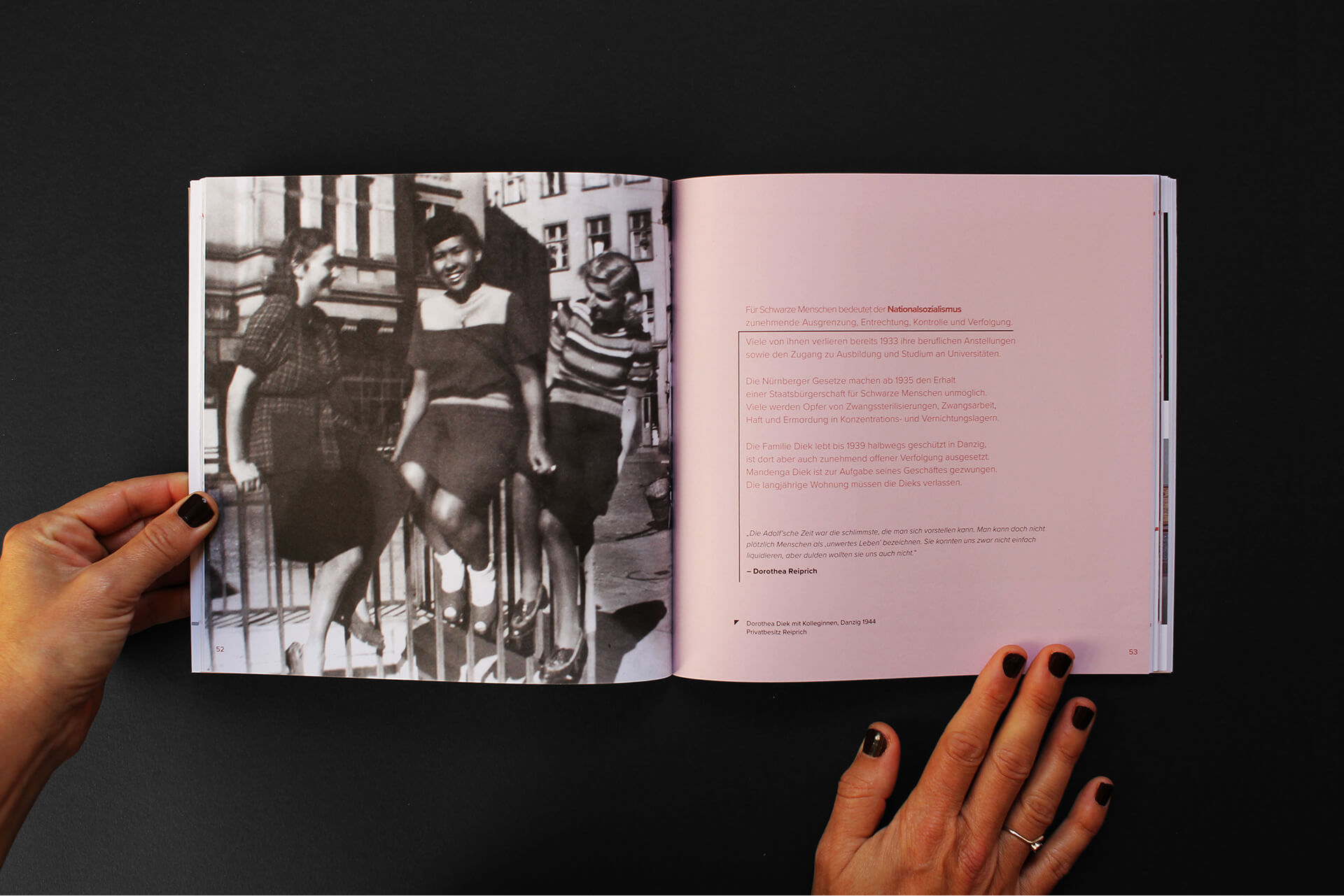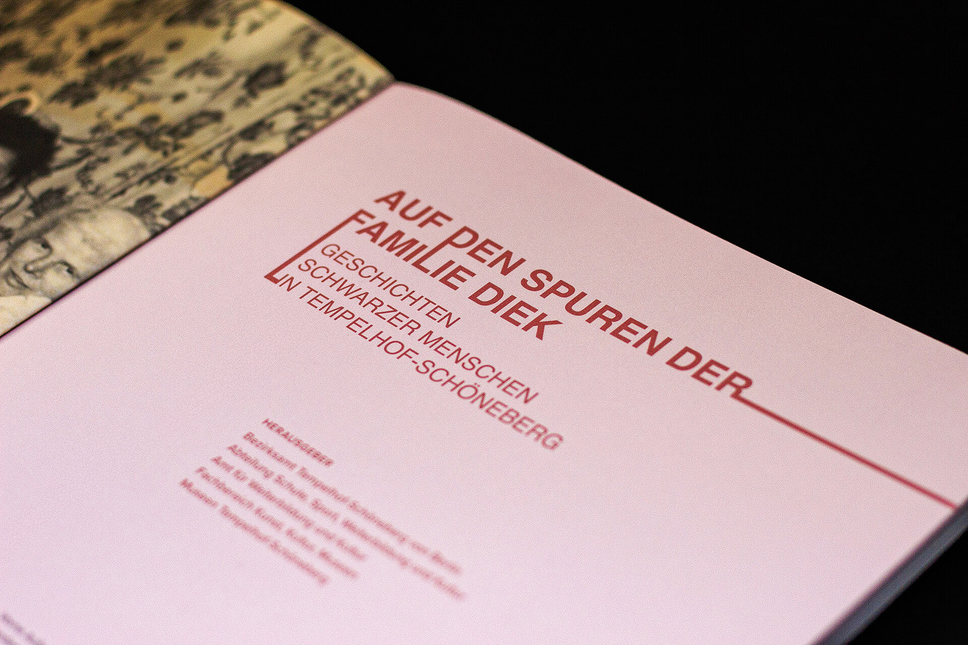 For the Museum of Schöneberg-Tempelhof in Berlin, we designed the catalogue for the exhibition The History of the Diek Family: the history of Black people in the Schöneberg district. The publication brings together the texts and photographic material presented in the exhibition, focusing on the historical, social, and photographic content and translating the spatial narrative into a cohesive editorial object.